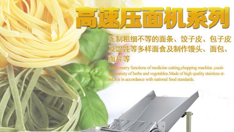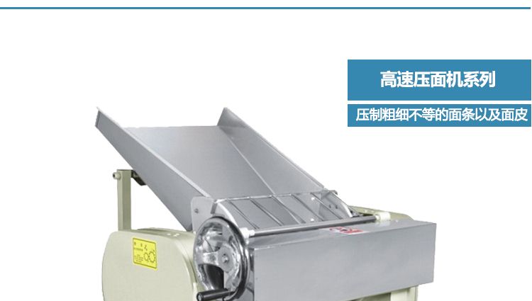 高速壓面機(jī)系列,本機(jī)壓面、揉面一機(jī)兩用,用于制作面條、云吞皮、糕點(diǎn)、面點(diǎn)等食品,生產(chǎn)的產(chǎn)品韌性大、耐煮、不易斷,適合于賓館、飯店、食堂、面包廠及各類面點(diǎn)加工單位或個(gè)體商戶使用。